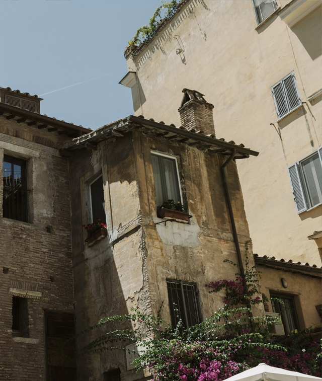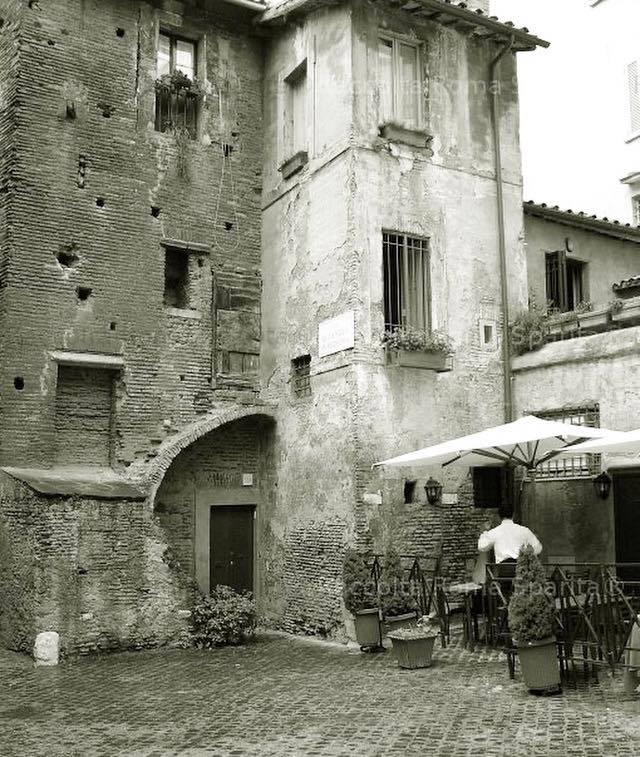 Il locale incastonato in un angolo dalla bellezza unica nel Rione Sant’Angelo, circondato dalla ancora perfettamente intatta Torre dei Grassi, il retro del Portico D'Ottavia e la chiesa di Sant'Angelo in Pescheria, accoglie gli ospiti in una saletta intima e riservata per apprezzare al meglio l’atmosfera tipica di quello che è un punto di riferimento storico nel ghetto ebraico di Roma.