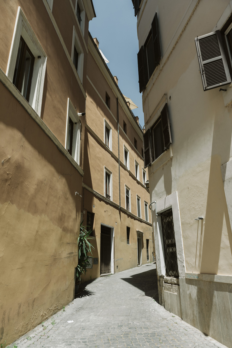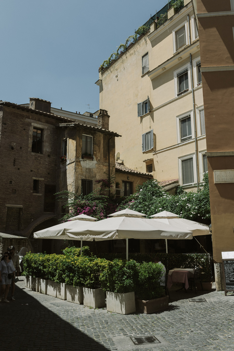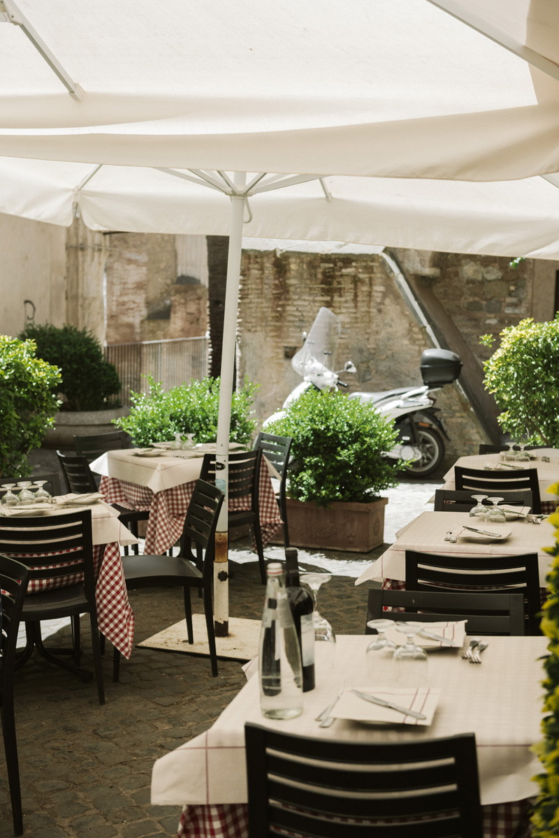 Il locale incastonato in un angolo dalla bellezza unica nel Rione Sant’Angelo, circondato dalla ancora perfettamente intatta Torre dei Grassi, il retro del Portico D'Ottavia e la chiesa di Sant'Angelo in Pescheria, accoglie gli ospiti in una saletta intima e riservata per apprezzare al meglio l’atmosfera tipica di quello che è un punto di riferimento storico nel ghetto ebraico di Roma.